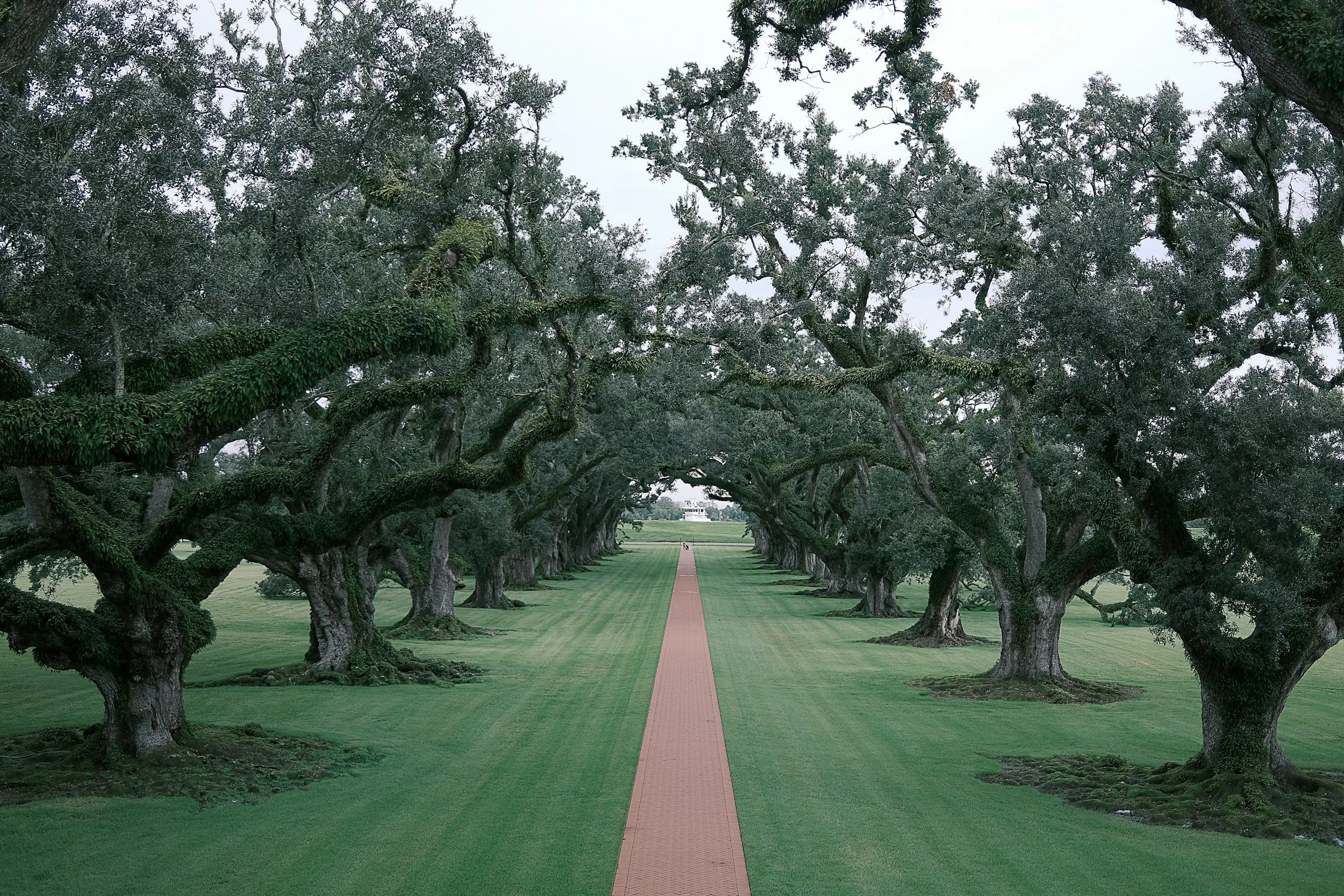 Oak trees lining walking path in manicured green space. Healing, wellness, wellbeing, thriving, holistic health care, integrative care Minneapolis MN